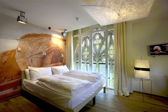 Rassurez-vous aucune mère supérieure qui passera souffler votre bougie à 21h15 ! Non ce sera plutôt écran plat, mobilier design et salle de bain grand luxe pour votre nuit au couvent.