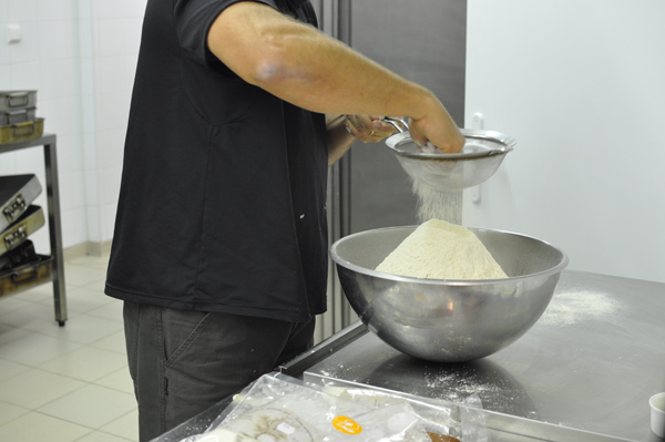 – la pulenda : purée à base de farine de châtaigne et comme on est cuisinier blogueur on a même donné un chti coup de main pour la remuer (préparation 30 min) : ici François Tomasi, me myself et Benjamin