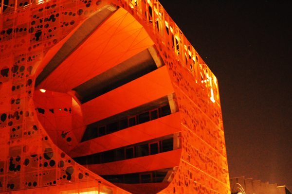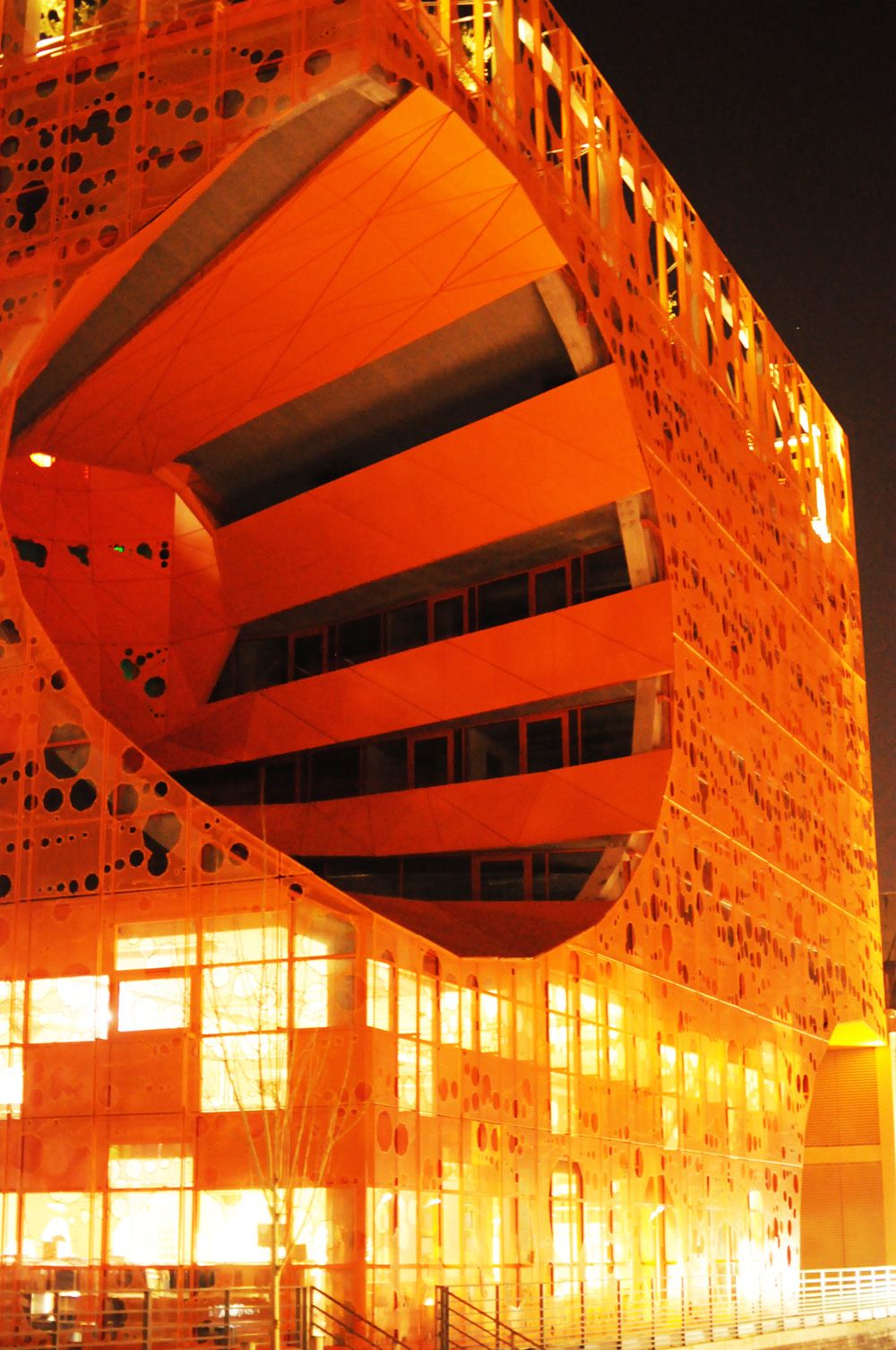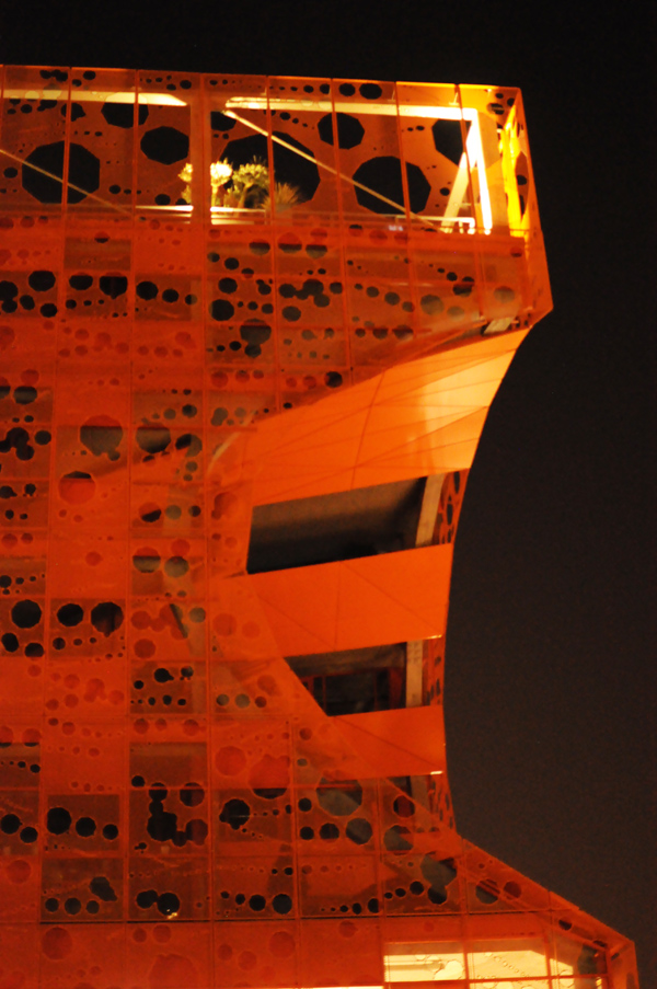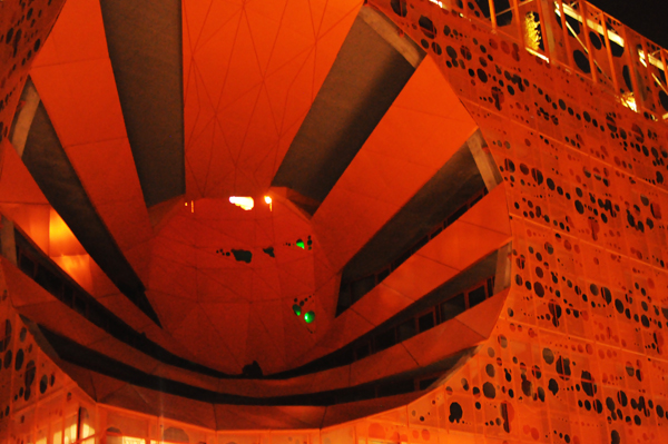 La bâtiment est entièrement tourné vers la lumière : façade ajourée, cône immense pour la faire entrer… D’ailleurs les trous représentent 75% de la surface totale !