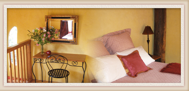 Côté bottes, enfin location, vous aurez droit à deux étages. Au rez de chaussé, canapé et cheminée, kitchinette et TV complète l’équipement. A l’étage, votre chambre avec un joli petit balcon, histoire de chanter la sérénade à votre dulcinée. Le petit déj avec les fruits du vergers, vous sera livré tous les matins à votre porte. Les repas préparés par le couple sont dans la même idée : tout vient du jardin !