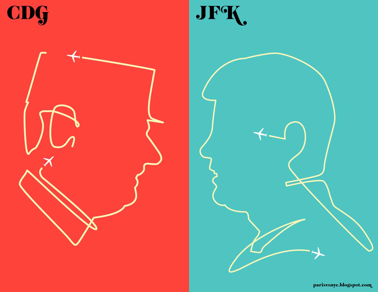 Ca y est, c’est officiel je m’envole pour New York. Oui je sais tout le monde s’en fout mais ça me permet de vous dire que je pars à la conquête du New York Insolite. Pas bien sûr de ce que je vais trouver là-bas mais je m’imagine plein de choses. Et comme je suis plutôt du genre à avoir l’imagination visuelle, je me fais mon portofolio d’un New York insolite que je rencontrerais peut-être cette semaine ici même. Et on commence par de l’art graphique. Un petit génie du genre, Vahram Muratyan, nous offre un match amical Paris contre New York façon desgin. Pierres de tailles contre briques, baguette contre bagel, Godard contre Woody Allen… un aller retour permanent entre les cultures, les références, les architectures des deux villes. Une vraie réussite tant l’artiste arrive à capter ces petits trucs qui font une ville, une atmosphère, un monde à part. Ses planches ont déjà fait le tour des 2 villes et vous pouvez vous offrir son livre ici. Très difficile de choisir juste 10 planches, mais tout de même, j’y suis arrivé :