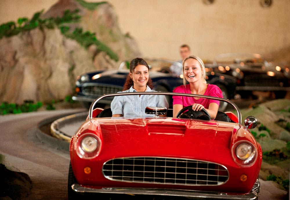 Si il vous reste 2 grammes de courage, n’hésitez pas à les griller à la tour G-Force : atteignez 62m de hauteur en quelques secondes et goûtez aux 3.8 G de pression, les mêmes auxquels sont régulièrement soumis les pilotes de F1. Mais rassurez-vous, vous pouvez aussi vous faire plaisir avec des simulateurs de conduite un peu moins violents ou même faire quelques tours de montagnes russes “mignonnes” au volant de wagons Ferrari !