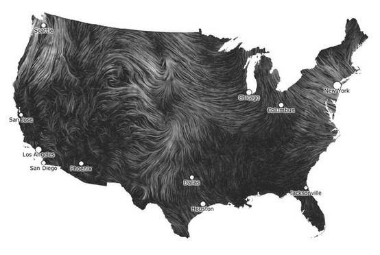 Non rien à voir avec Chewbacca, cette carte représente les vents aux Etats-Unis. Aussi design que scientifique !