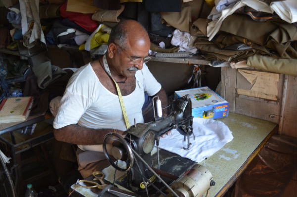 C’est donc à deux (on est toujours plus forts à plusieurs) et de bonne heure (de bonne humeur serait exagéré) que nous partons en direction du bureau central de la poste de Jodhpur, à 20 bonnes minutes de marche de l’hôtel. Une fois sur place, nous nous frayons un chemin jusqu’à un comptoir pour demander le service des colis. On nous dit succinctement qu’il faut d’abord passer chez le tailleur de l’autre côté de la rue et de revenir ensuite !!?? On n’est pas assez bien habillé pour envoyer un colis ? Ils veulent un costume en guise de bakchich ? Rapidement, un homme nous aborde dans la rue en nous demandant “Tailor? Tailor for parcels?”… Euh, oui.