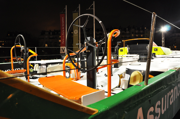 Le salon de l’auto a ses formules 1, le salon nautique aussi ! Et si vous passez devant l’entrée, vous pourrez admirer la bête de course du skipper Franck Cammas , Groupama et même pratiquement monter sur le pont. Ambiance course !