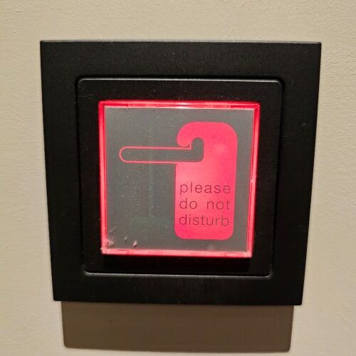 Petit gadget original : pas besoin de panneau de porte sur la poignée “do not disturb”, un interrupteur vous permet d’afficher votre souhait.