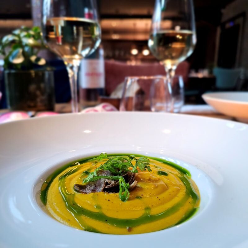 En entrée ce jour là : velouté de châtaignes et potimaron