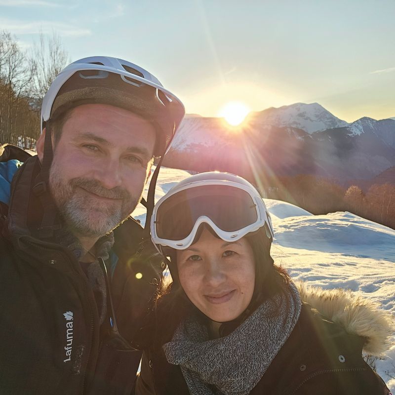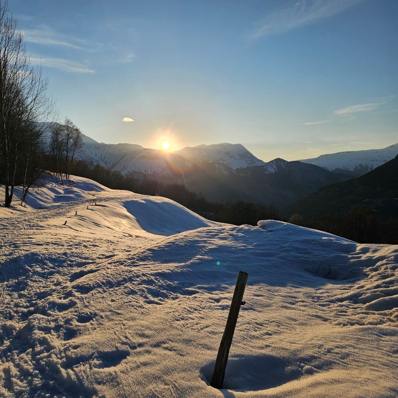 On a pu s’offrir un joli coucher de soleil grâce au fatbike qui permet d’atteindre des zones sans pistes de ski.